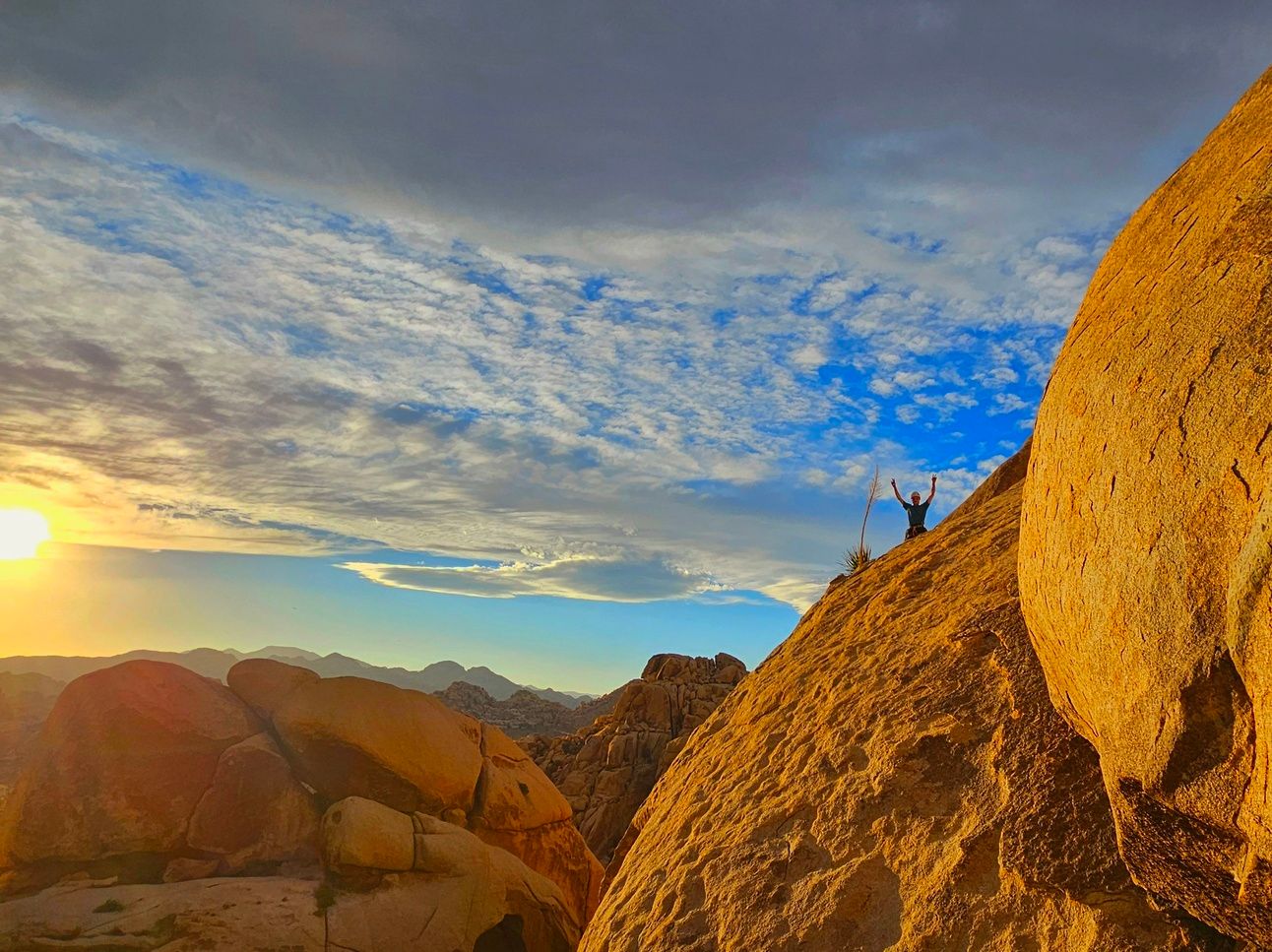 Joshua Tree, is only 3 hours from San Diego and we'll worth the trip. I first came to Joshua Tree N.P. about 25 years ago after getting rained on and flooded out of Yosemite N.P. There's a lot more expensive vans at the campground and seems like less climbers. The climbing is still fabulous and the sunsets remarkable.