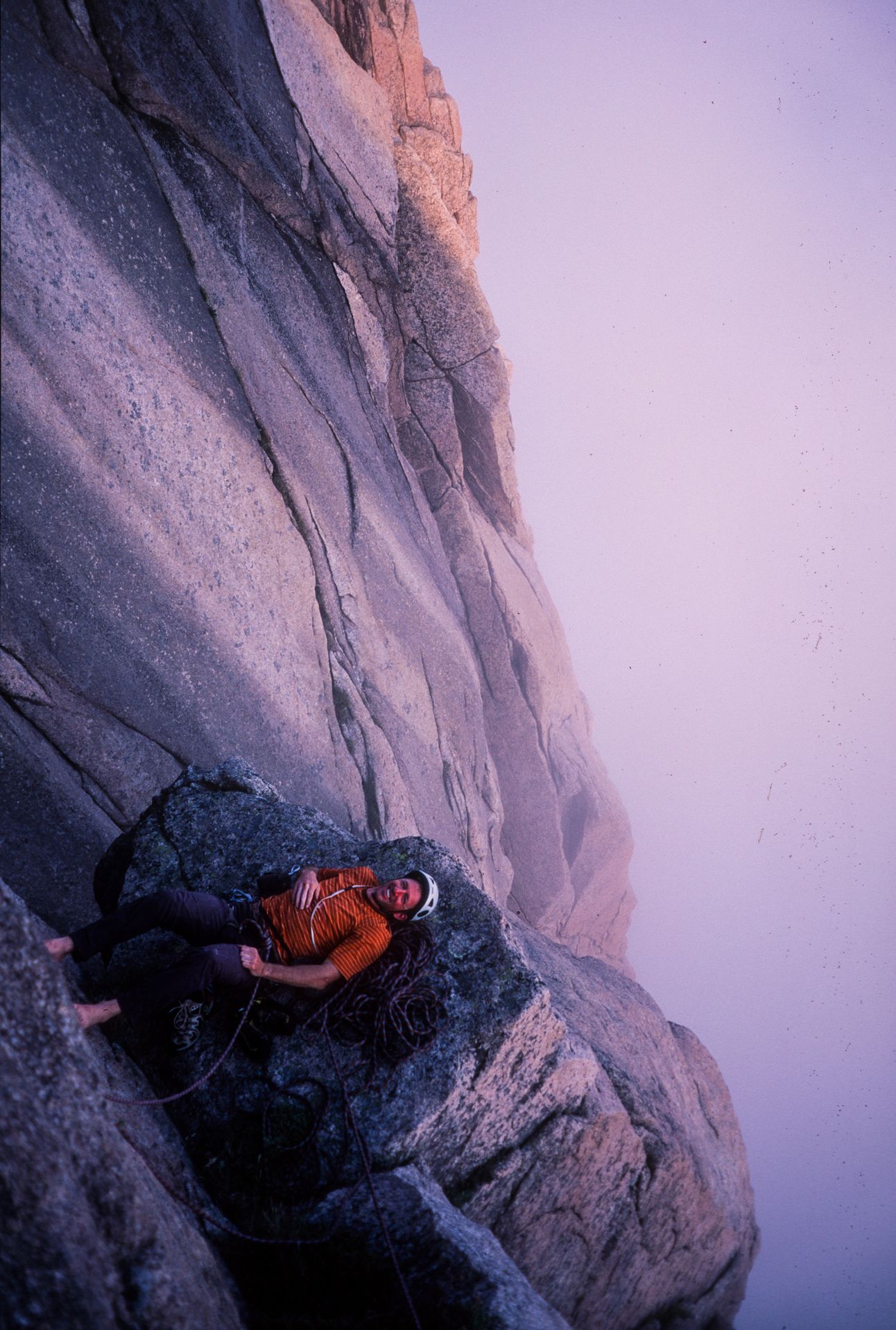 Newfoundland - Erik Nelson with the 5 star belay ledge